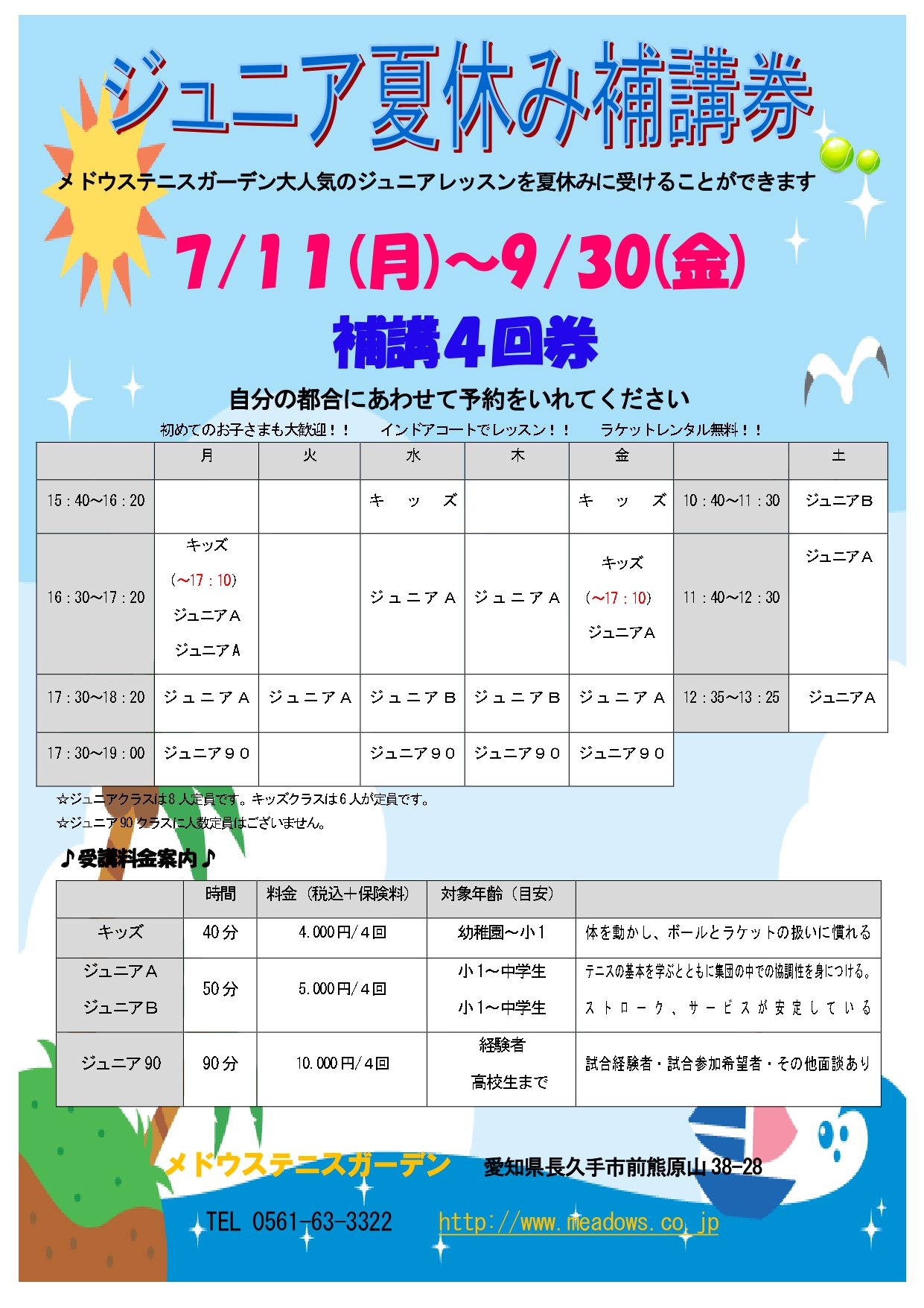 今日もキッズ&ジュニア夏休み補講券を販売致します。