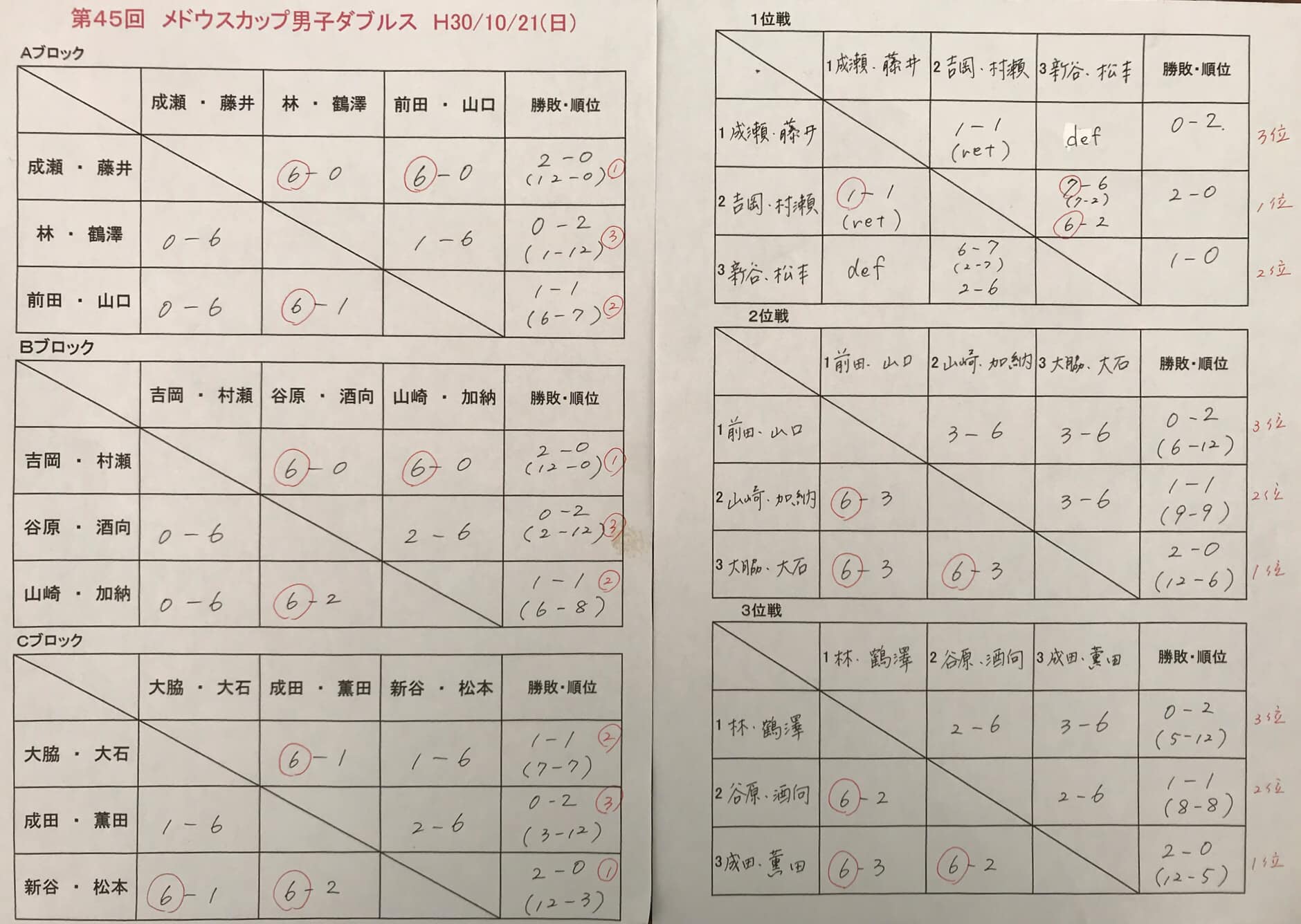 優勝 吉岡 村瀬 / 2位 新谷 松本 / 3位 成瀬 藤井