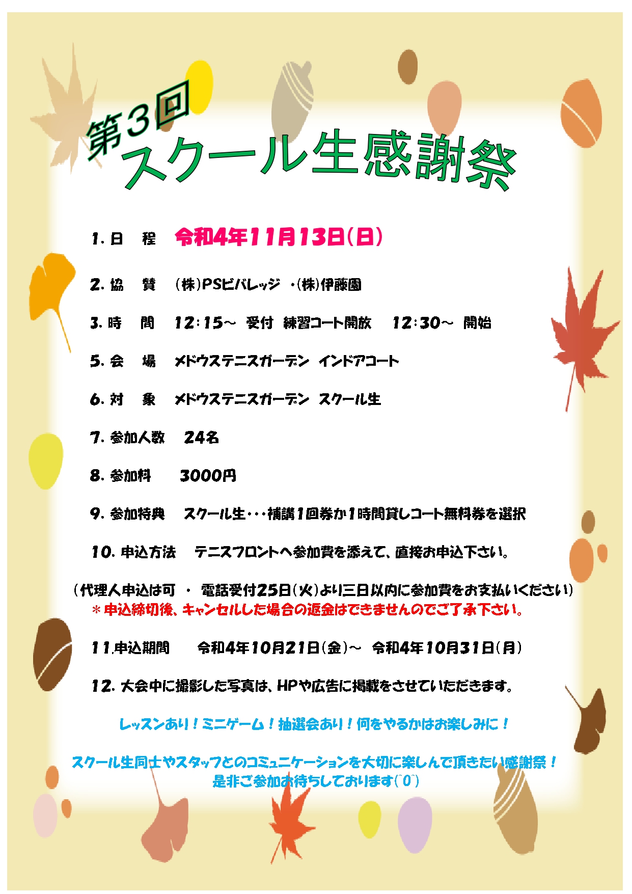 11月13日に開催予定のスクール生感謝祭の申し込みが
