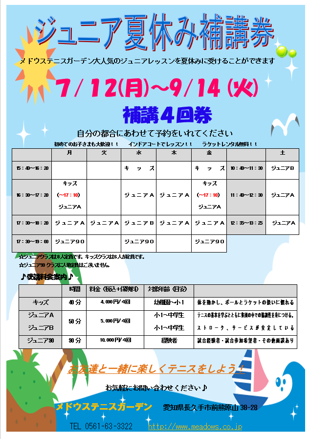 平日ナイタークラス、土日のクラスの方に関しては