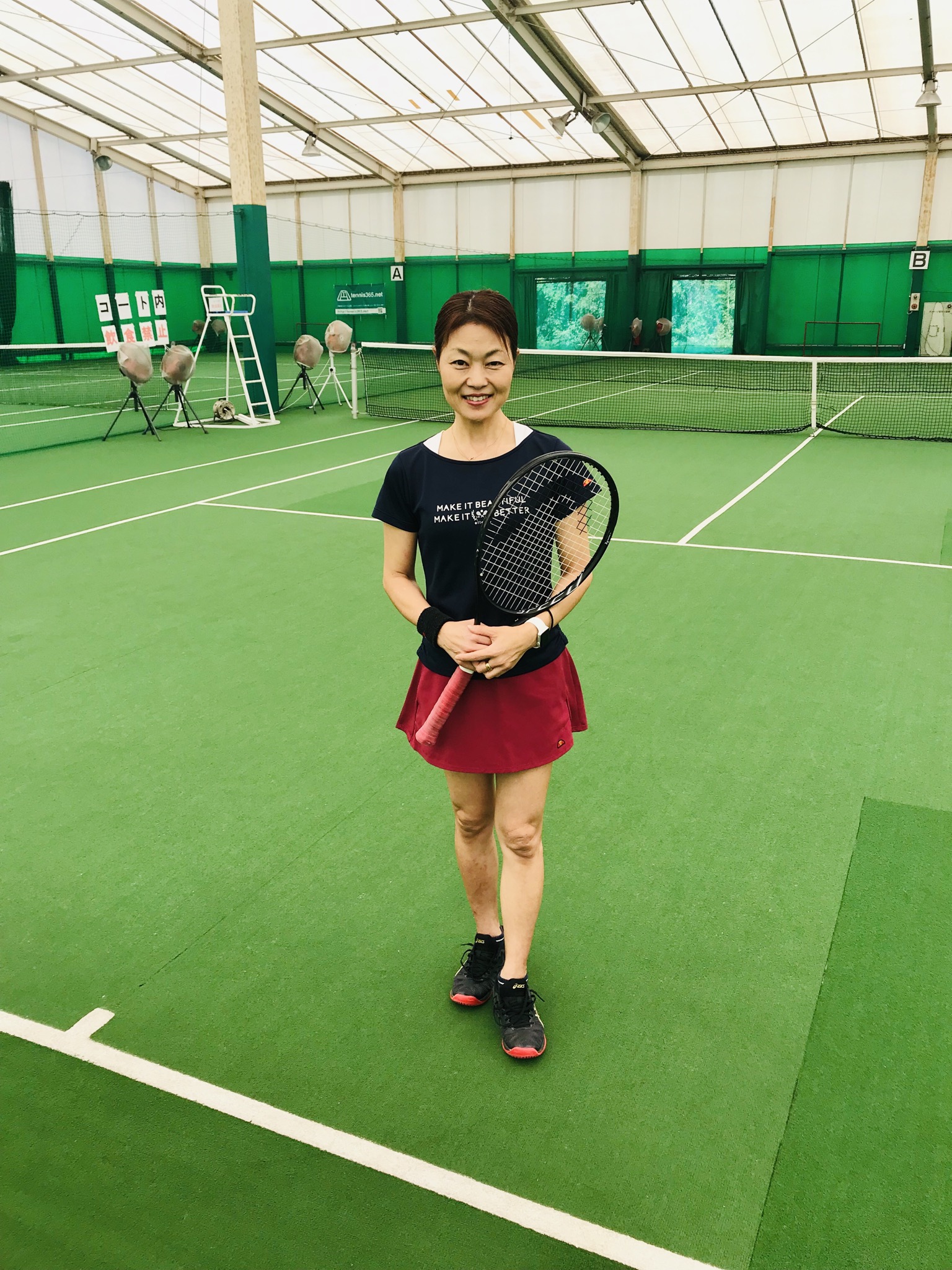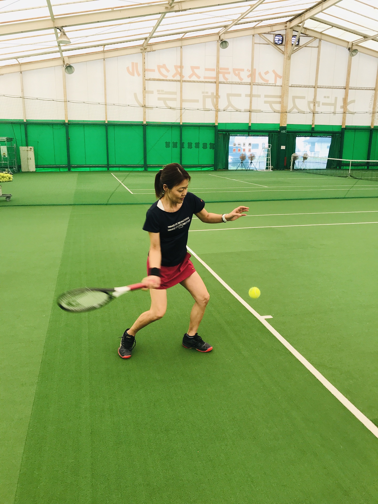 今日は残暑厳しくインドアコートもまだスポットクーラーと