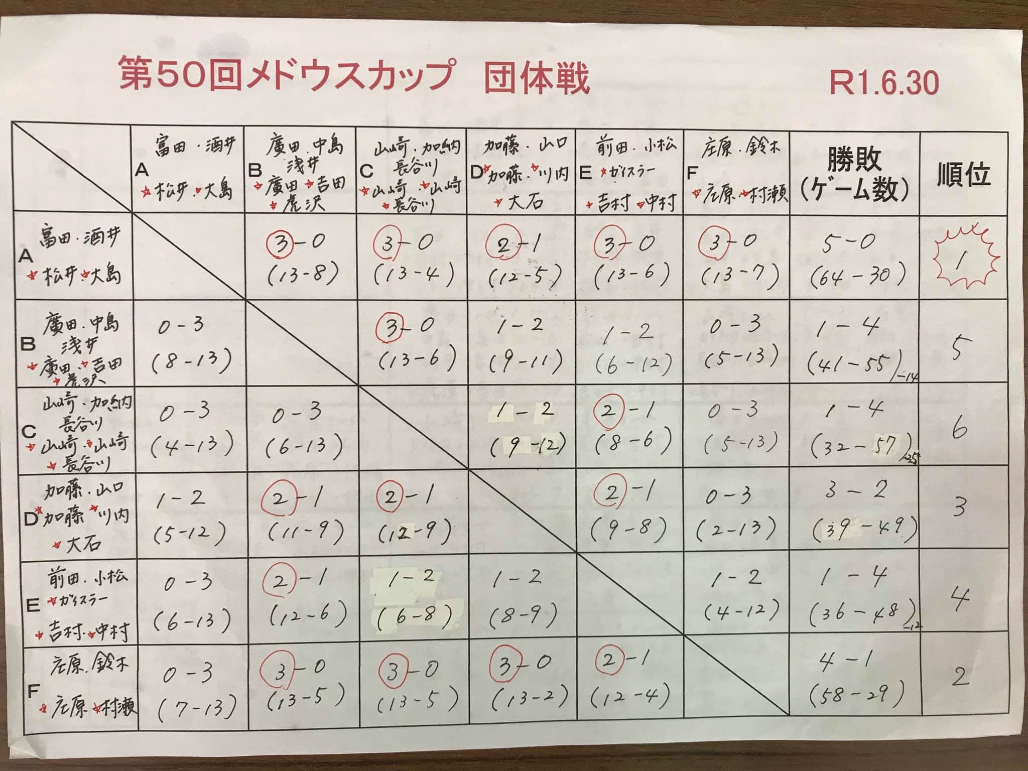 第50回 メドウスカップ 団体戦