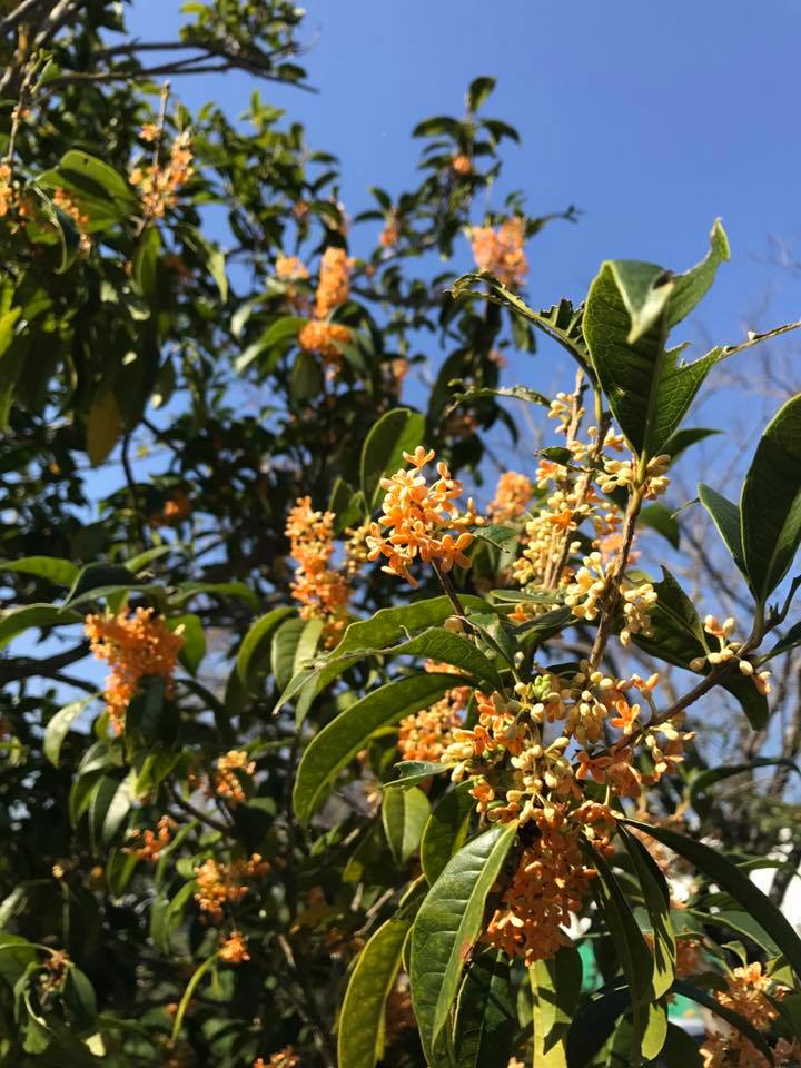 敷地内のキンモクセイの香りをいっぱいかいでいます