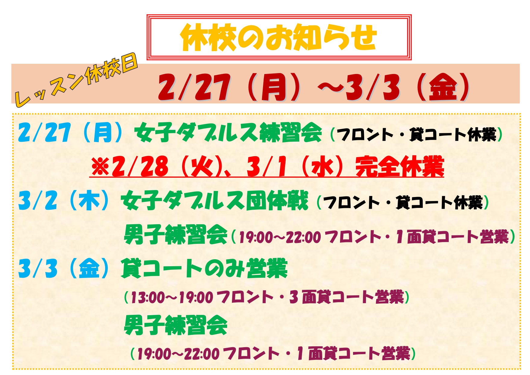 2月27日(月)から3月3日(金)まで