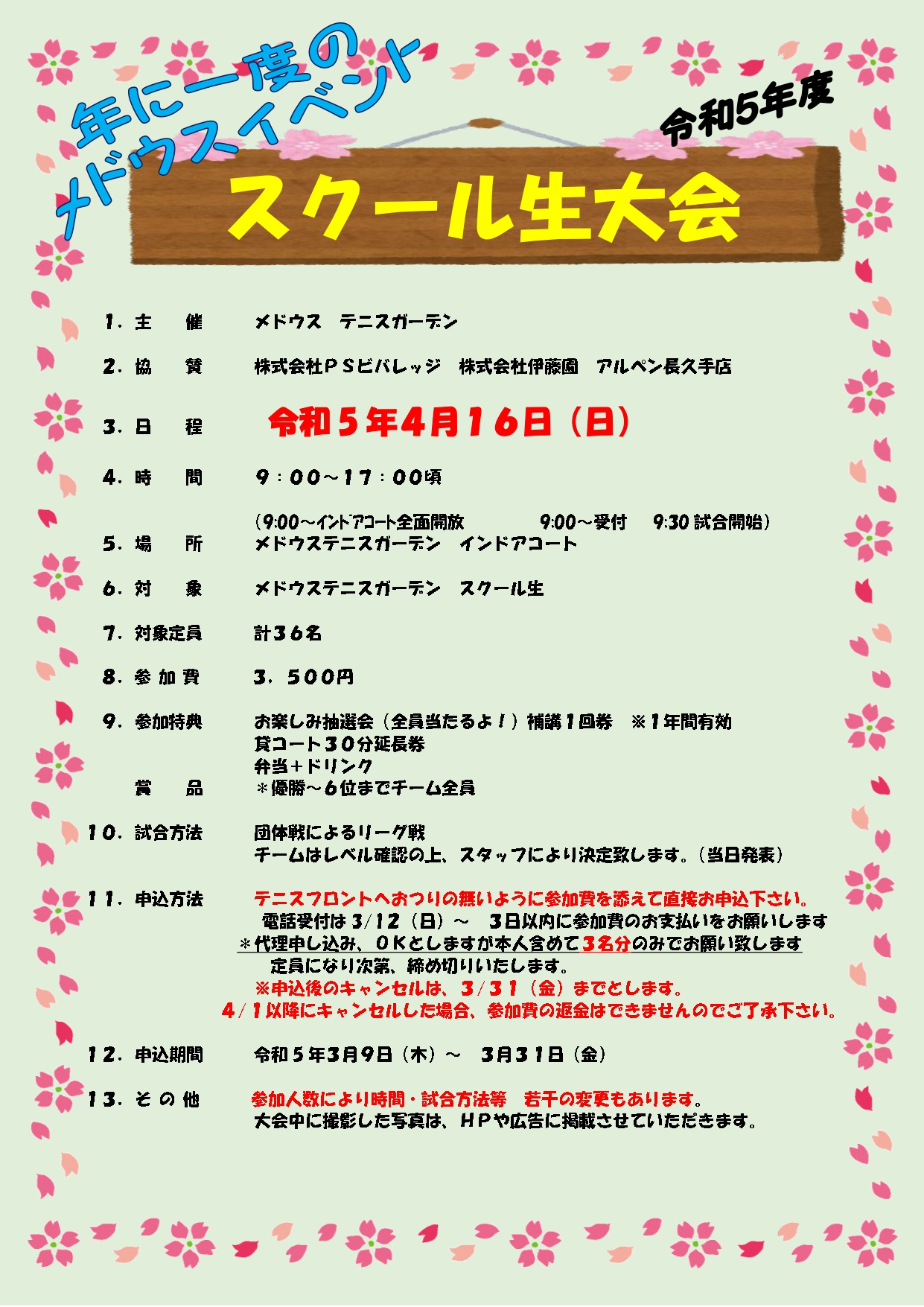 申込はお早めに!