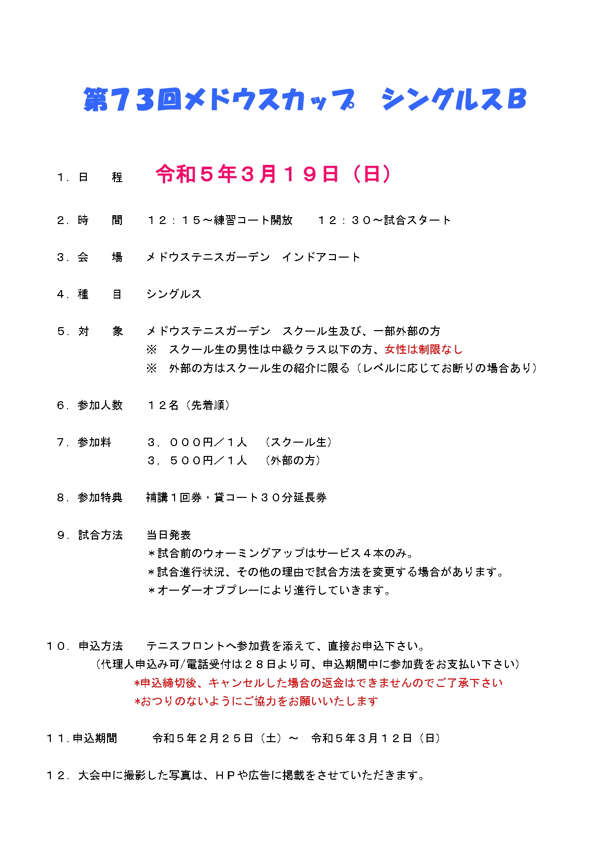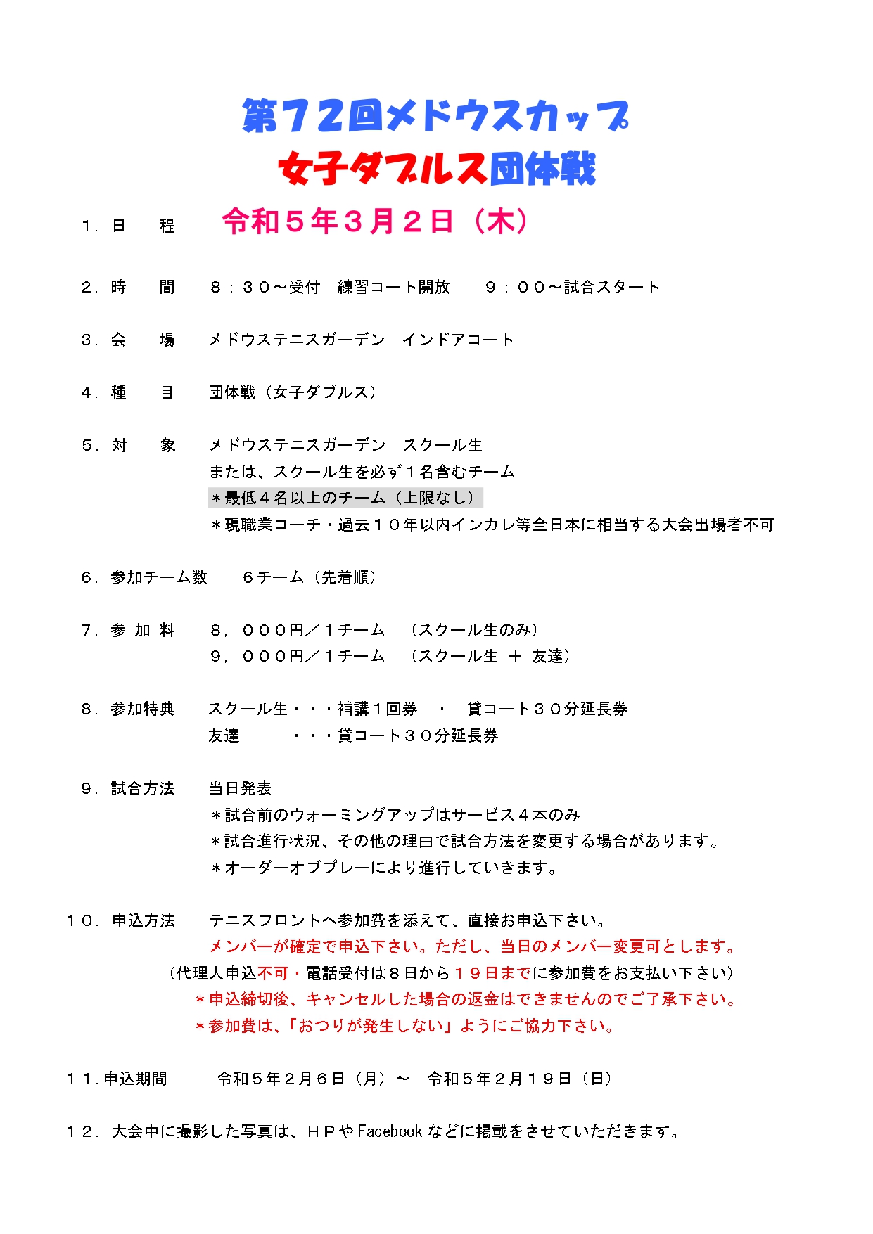 メドウスカップバレンタインMIXダブルスの申し込みが本日から