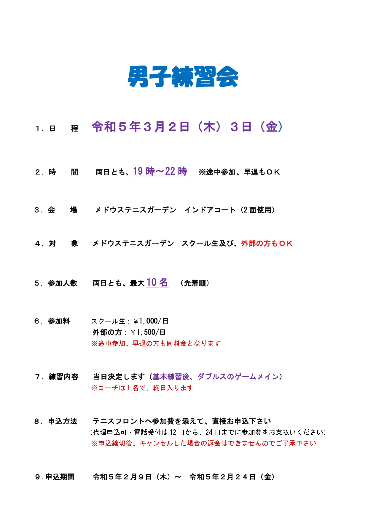 本日から女子ダブルスの練習会と団体戦の申し込みが