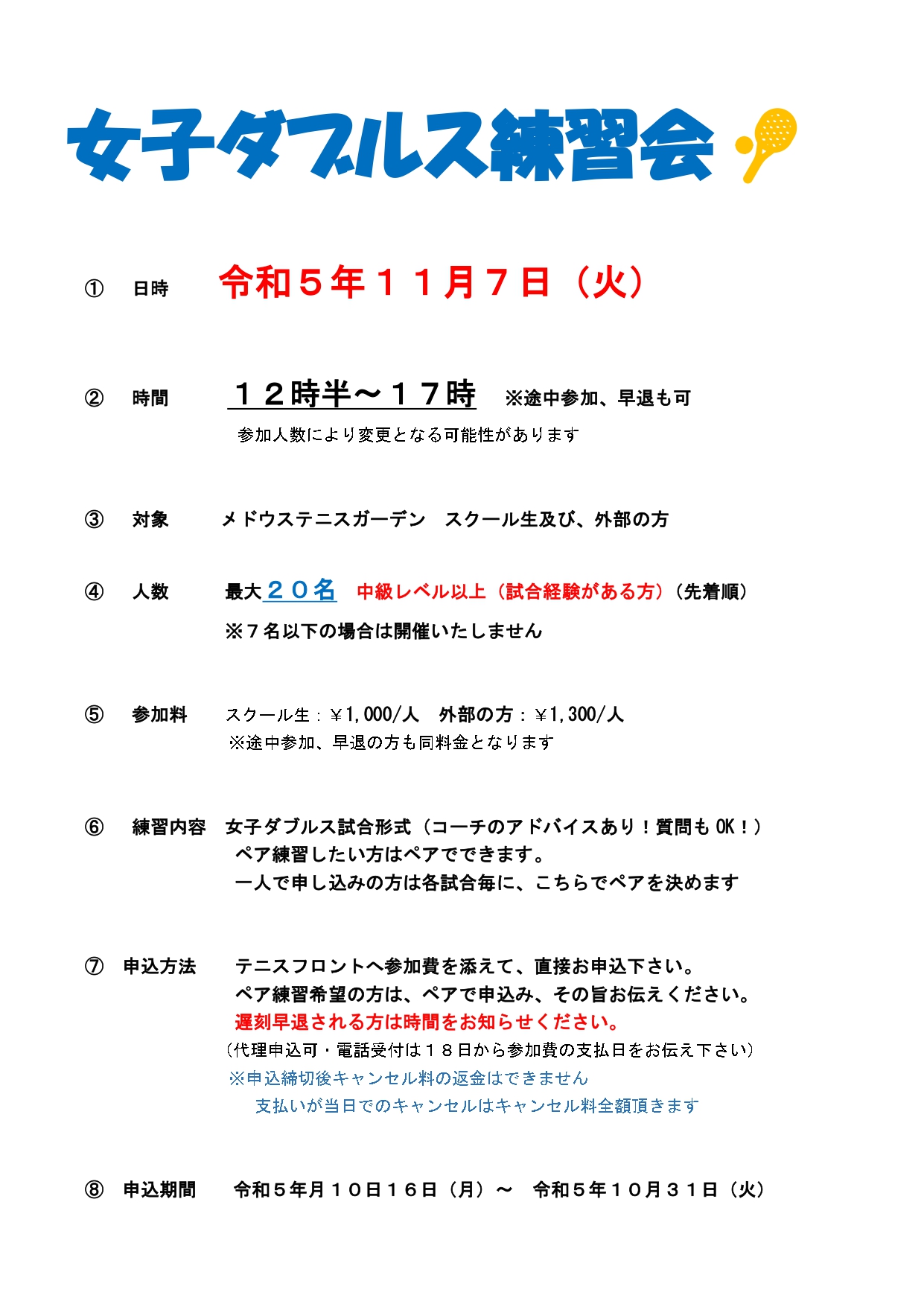 10月28日(土)に開催されるメドウスカップ団体戦の