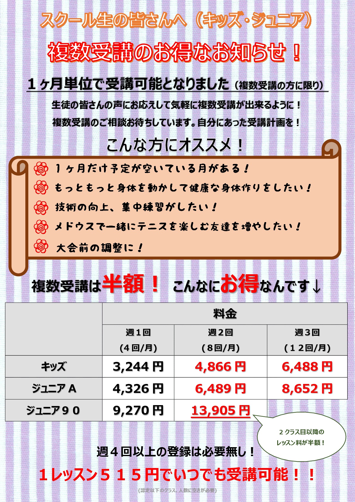 していただけるようにやりますのでどのクラスが自分にあっているかなど